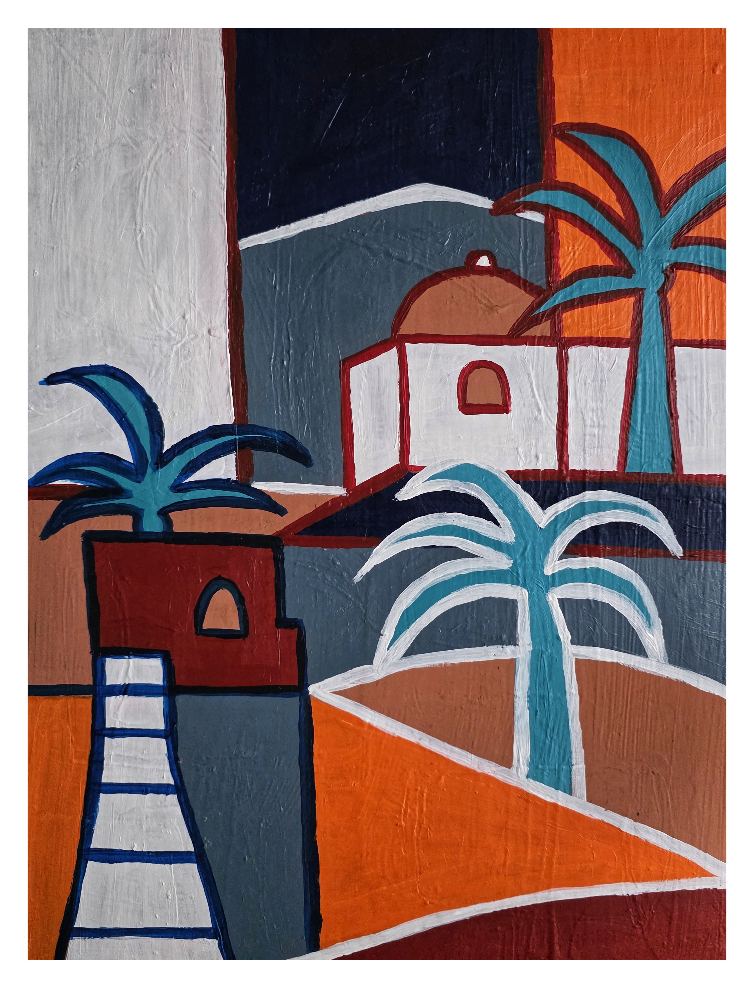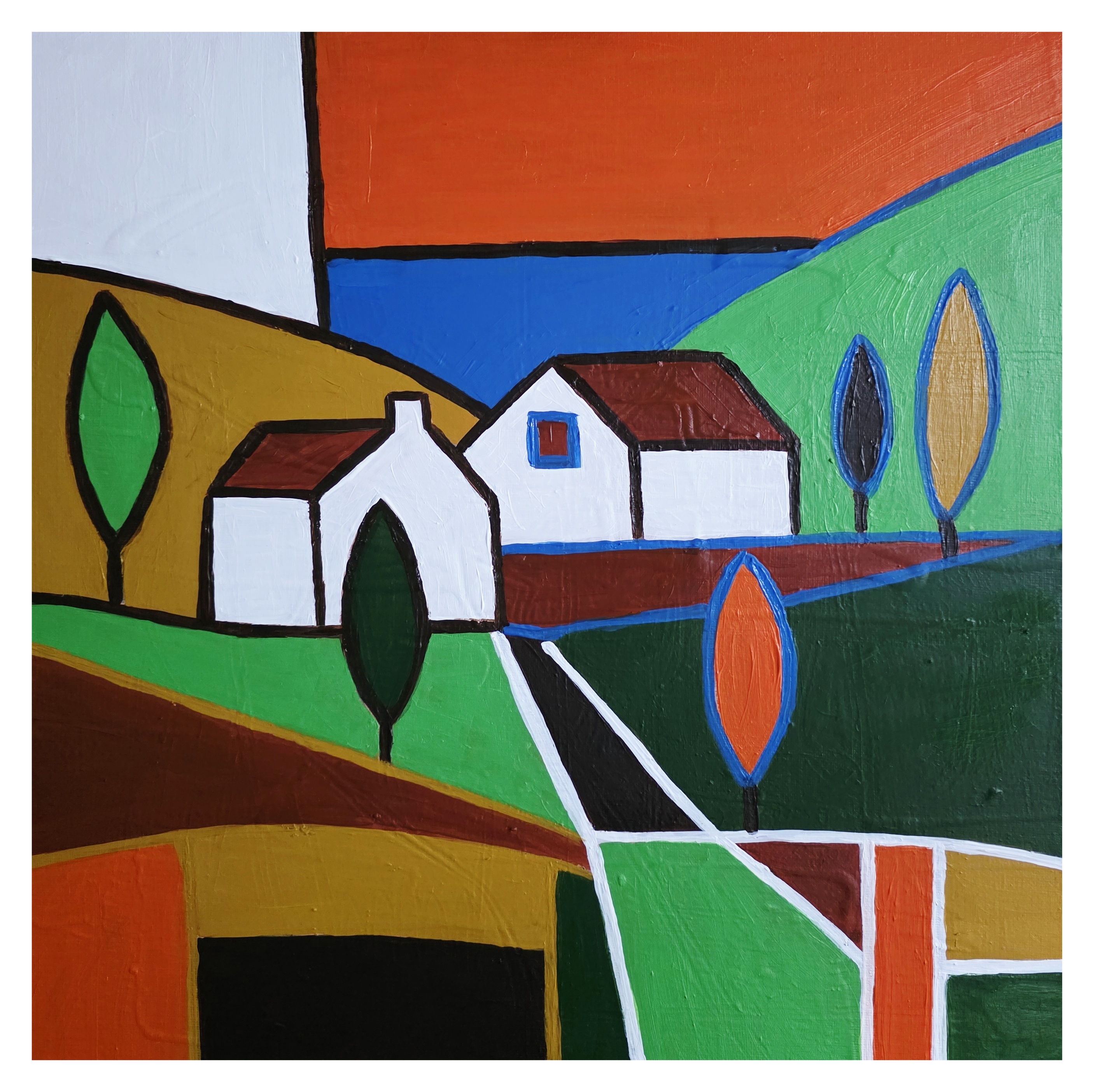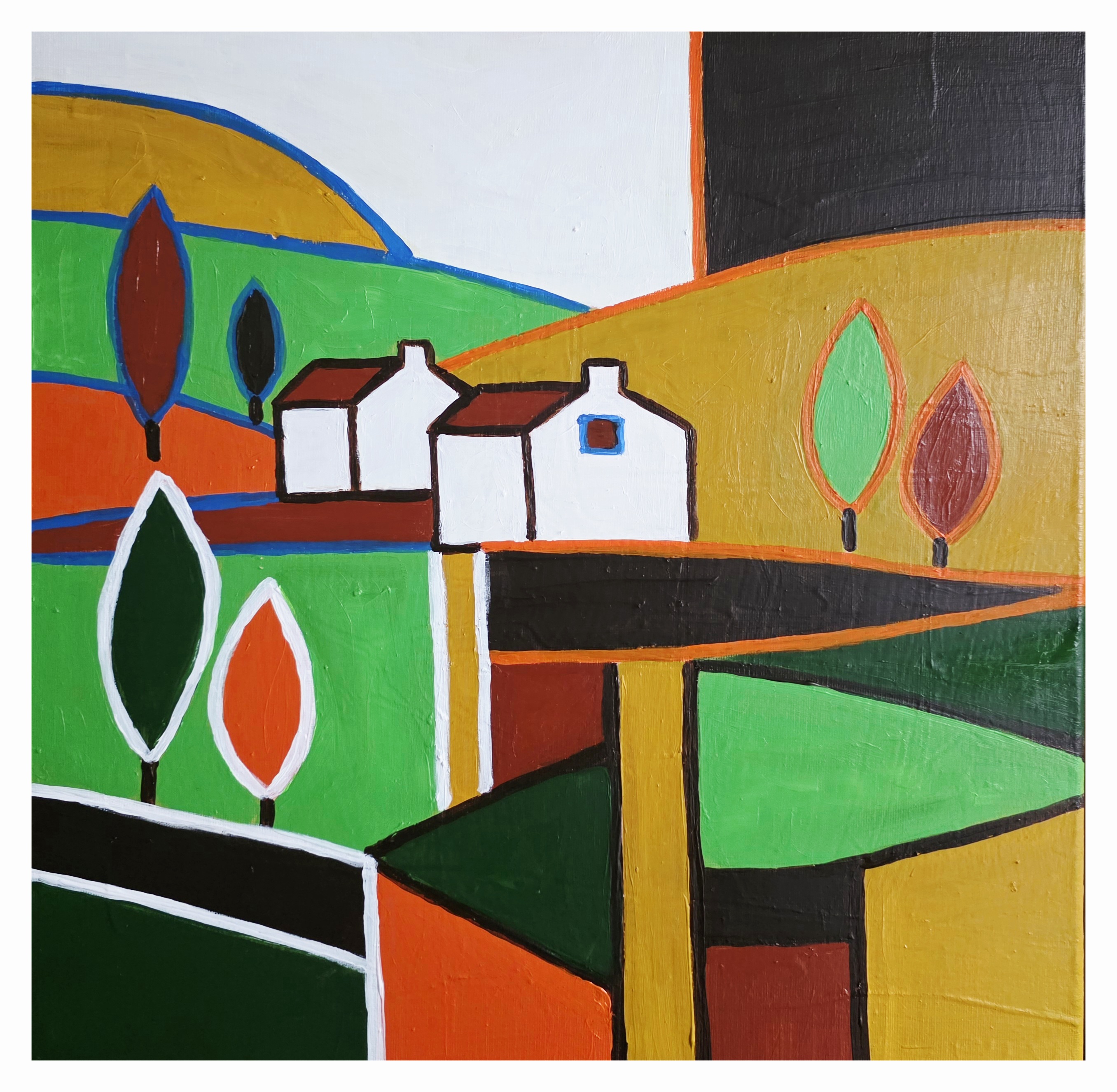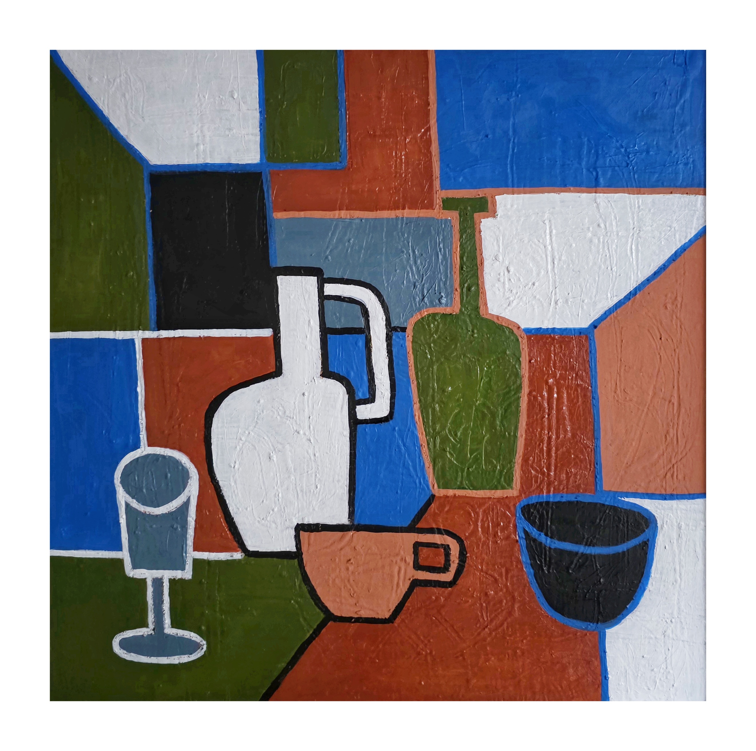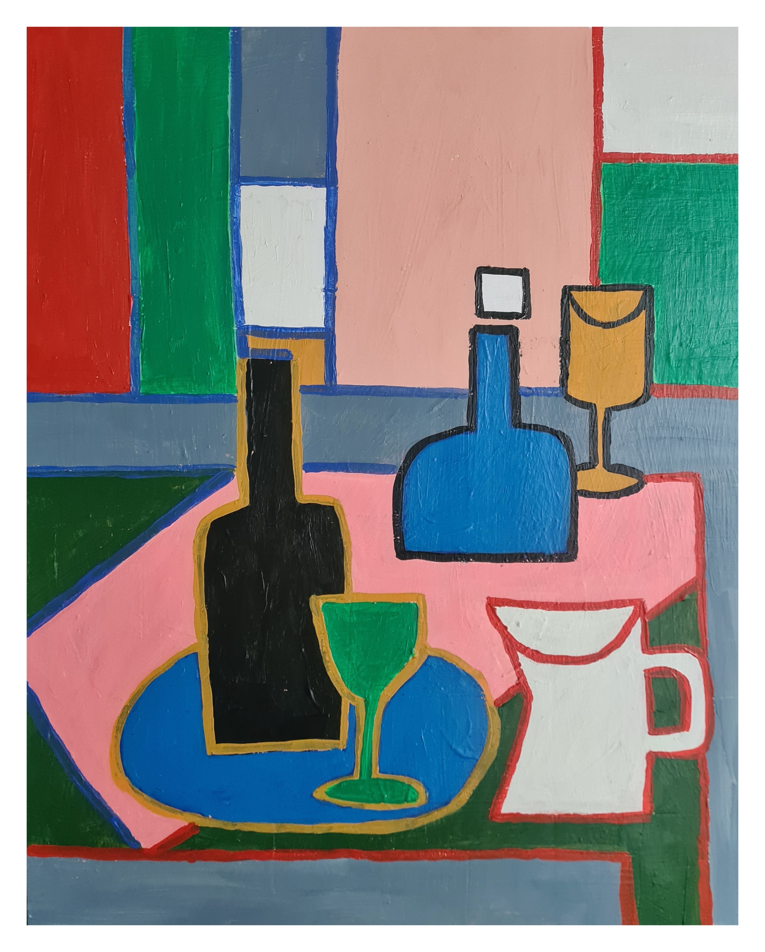 A contemporary painter whose vibrant abstract still life and landscapes explore the intersection of colour and form. Loosely influenced by the Cubist Movement Cath’s work reimagines everyday subjects through simplified shapes and layered perspectives.