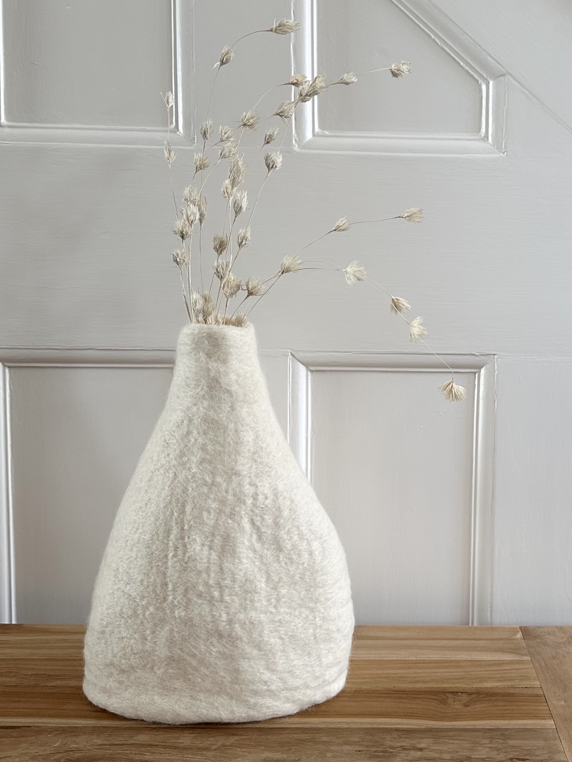 100% MERINO WOOL FIBRES, HAND FELTED STITCH