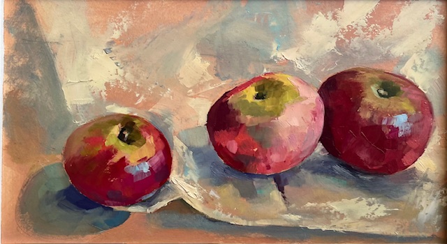 A move to North Norfolk a few years ago prompted a return to landscape painting, inspired by the expansive coastlines, big skies and open country side around her. Walking in the landscape with her two border collies and sketching provide a starting point and as painting begins, an intuitive approach comes to play whereby memories and instinct drive the work. Acrylic paints are applied in a variety of ways such as with palette knives, brush spattering from impasto to running paint as the the process of mark making is built up in layers to to achieves a textural surface. Sandy's works often have a visual pathway drawing the viewer through deep perspectives of sky, sea and and land’
