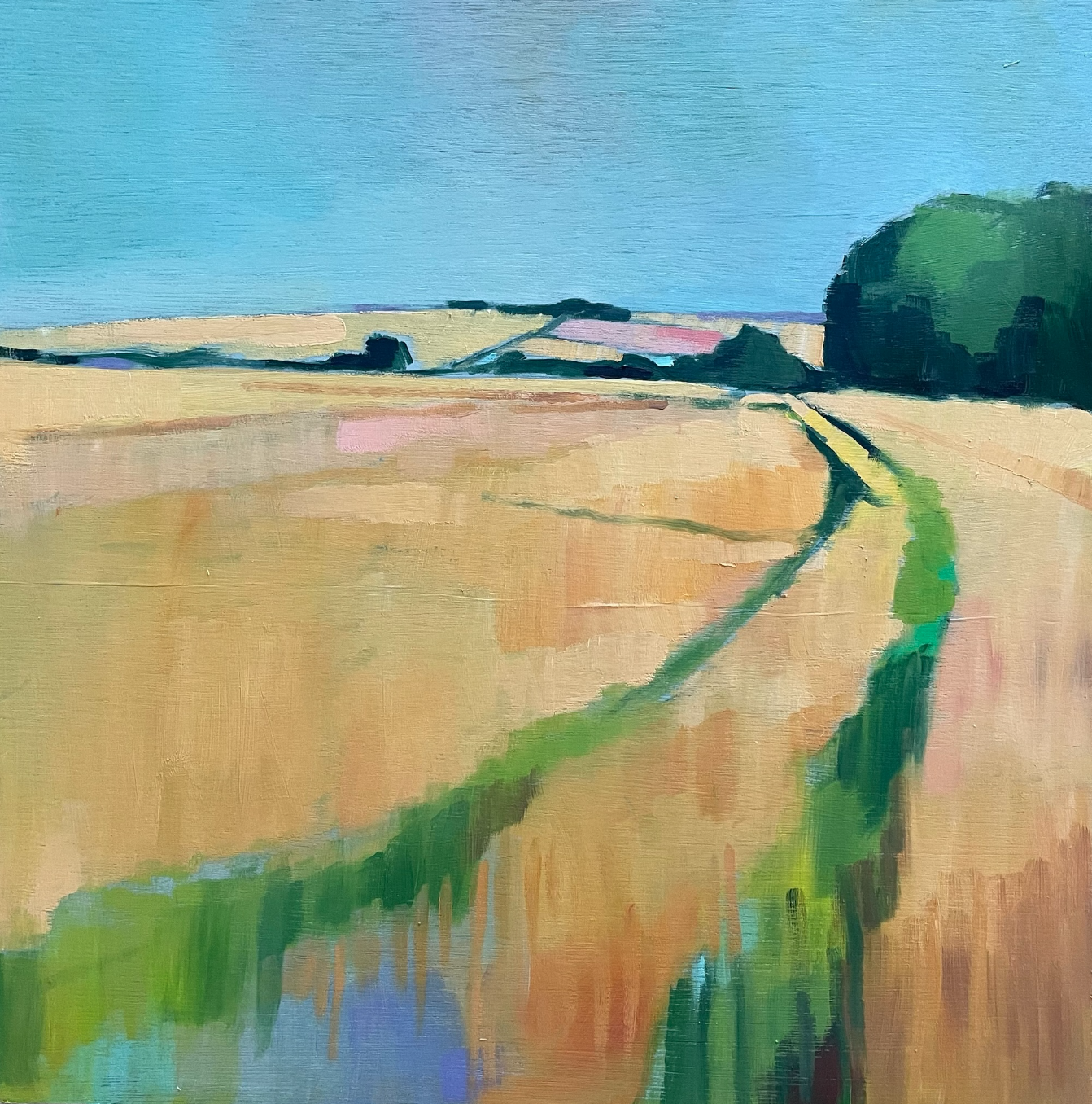 “I love to paint my surroundings. I’m always interested by the constantly changing British weather that transforms a landscape or place entirely. I love to paint shadows on a bright day and the vibrant colours in nature, but equally the moodiness of a winters day.”