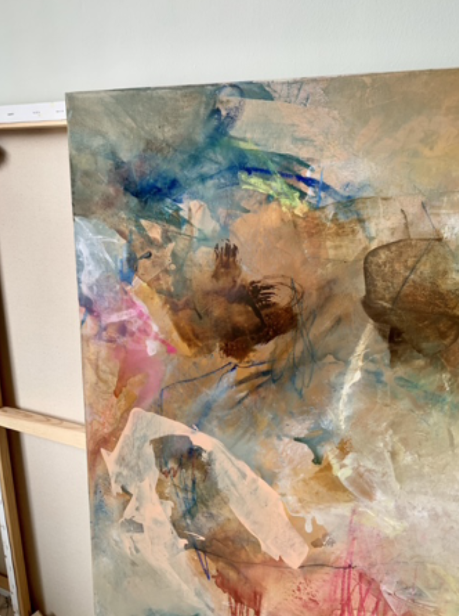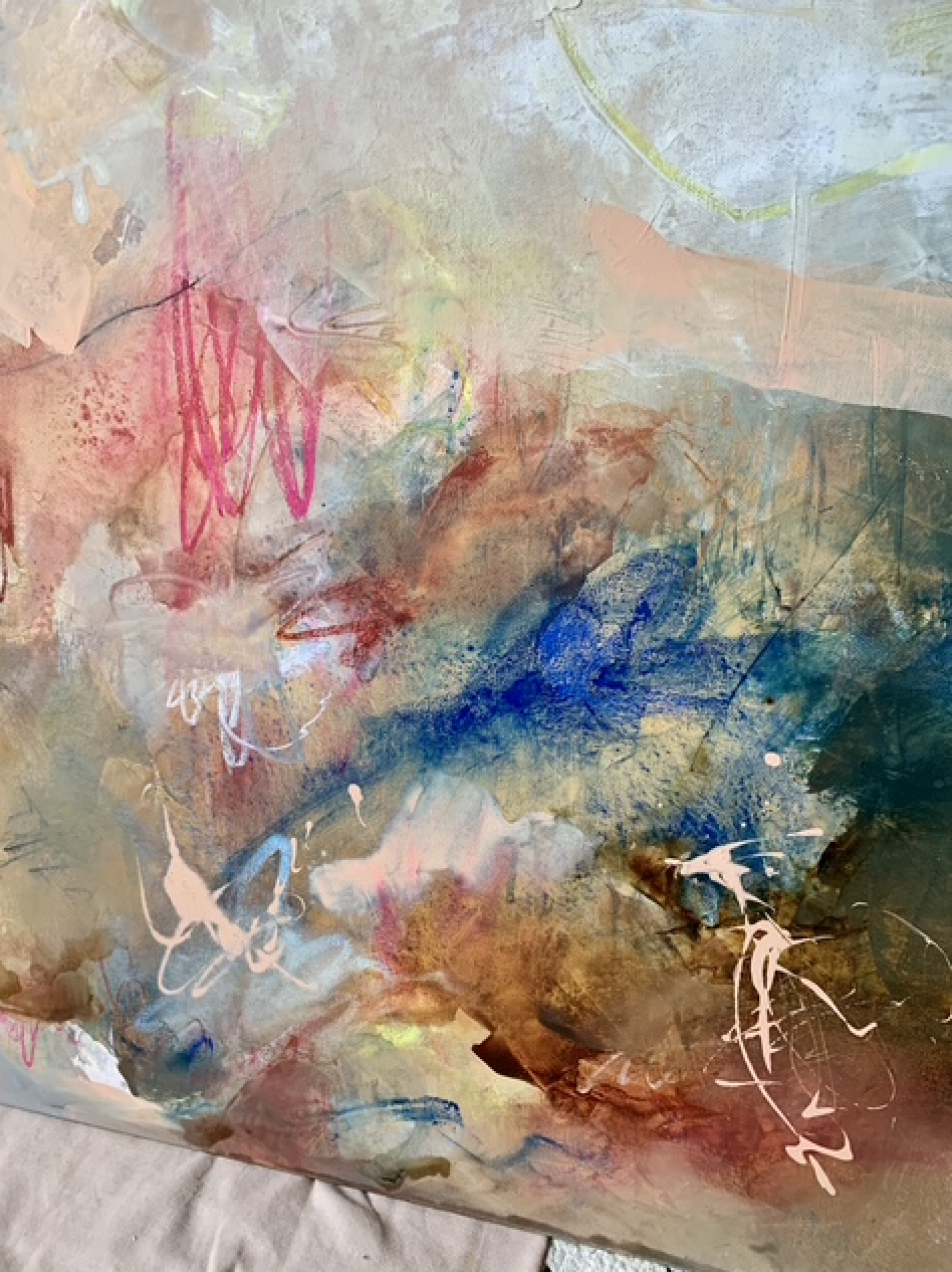 When I start a new piece, I have little to no plan as to what I am about to create. More often than not, the first layers on the canvas are an exploratory release of emotions. As I continue, the way the painting is going becomes clear. The build-up of these layers in itself has become an important part of my process. Each layer is significant to the final piece, even if not visible at the end. Much like our lives, depth is created here. It's my hope that my paintings inspire and impact the spaces where they hang and as a result the people around them. What do you see?
