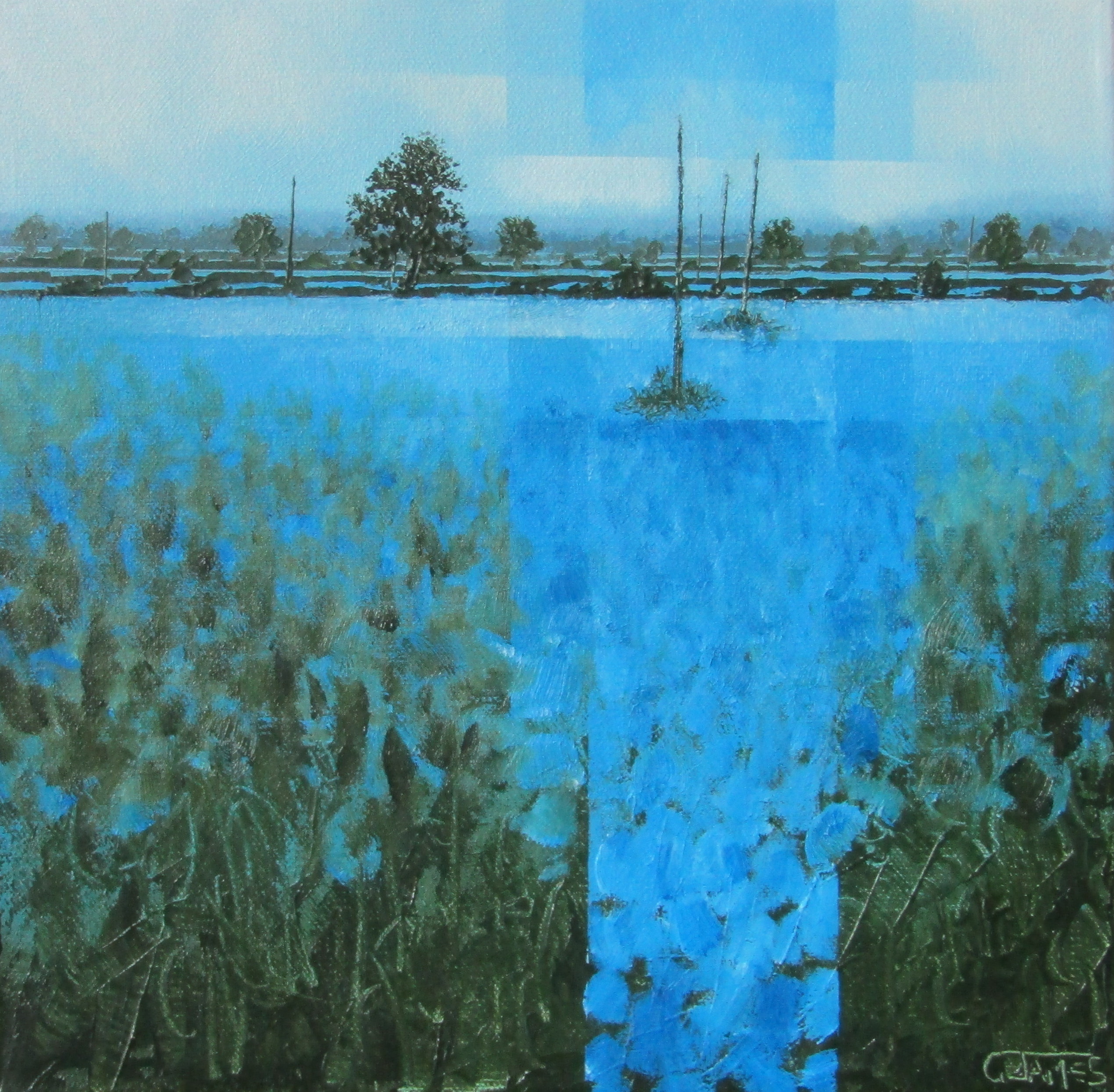 “These then are not landscapes in the comfortable Constable sense. They still address the age-old relationship between artist and farmer but it is evident that the 21st century is upon us, be it in the growing of new crops, the threat of climate change or the understated march of machinery. These paintings wake us from our dreamy preconception of what landscape painting is and challenge the viewer to see the Fenland Landscape and not just look at it.” Quote from Colan Campbell, Artist and Proprietor of Arts Coritani, Swineshead, Lincs.