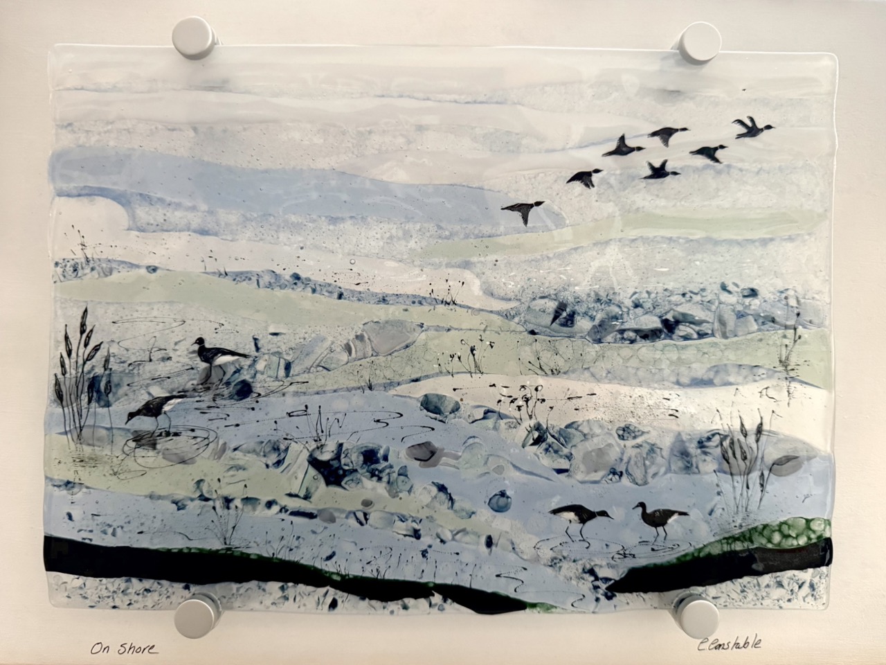 The East Anglian countryside Cathy Constable grew up in has inspired her work, especially the light, muted colours and textures of the marshes, estuaries and landscape. She uses fused glass as a vehicle to express the ethereal qualities and feeling of the salt marshes, water channels and mudflats that surround her.